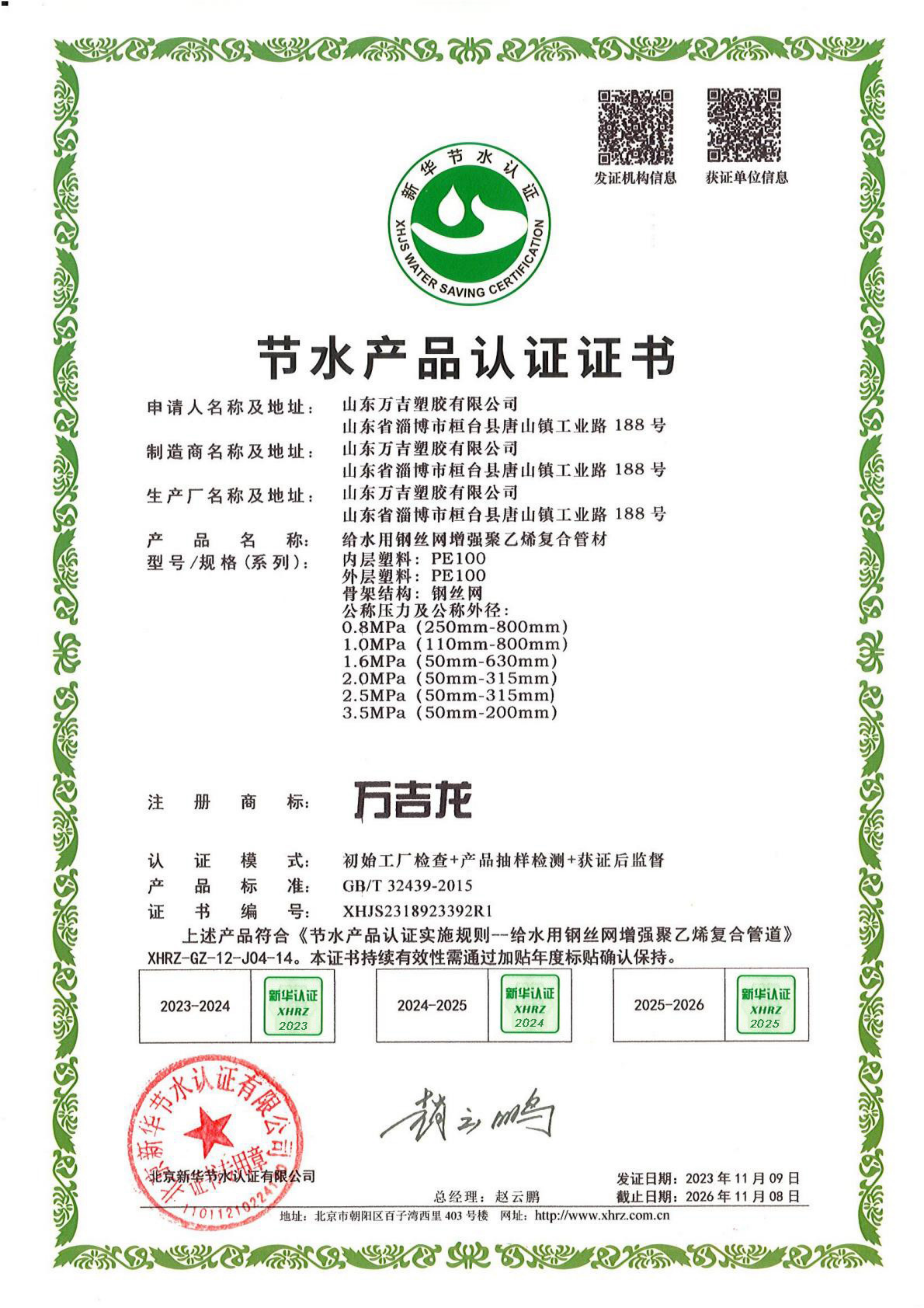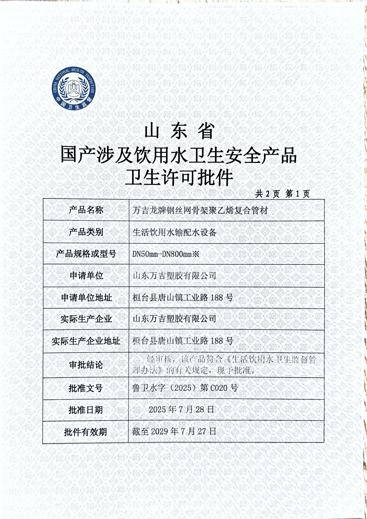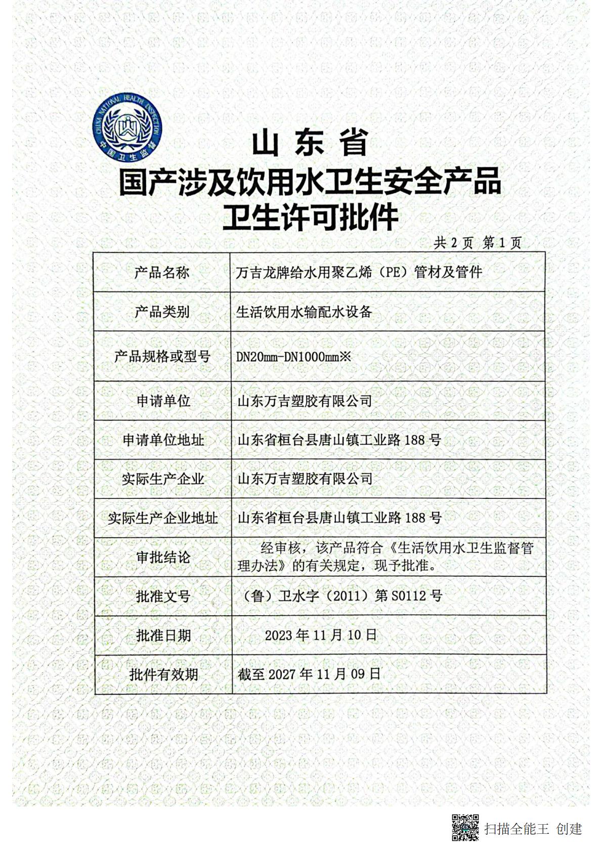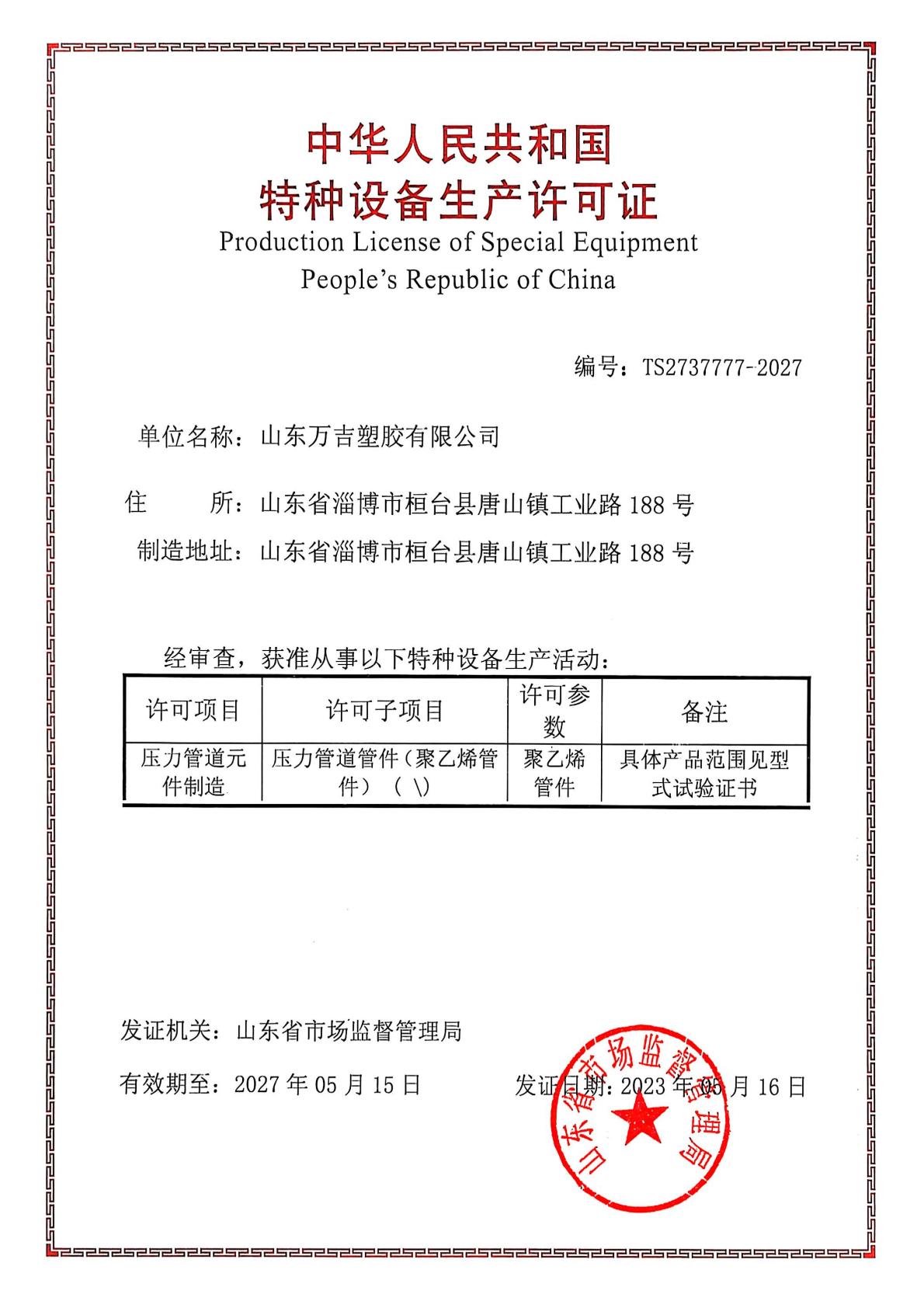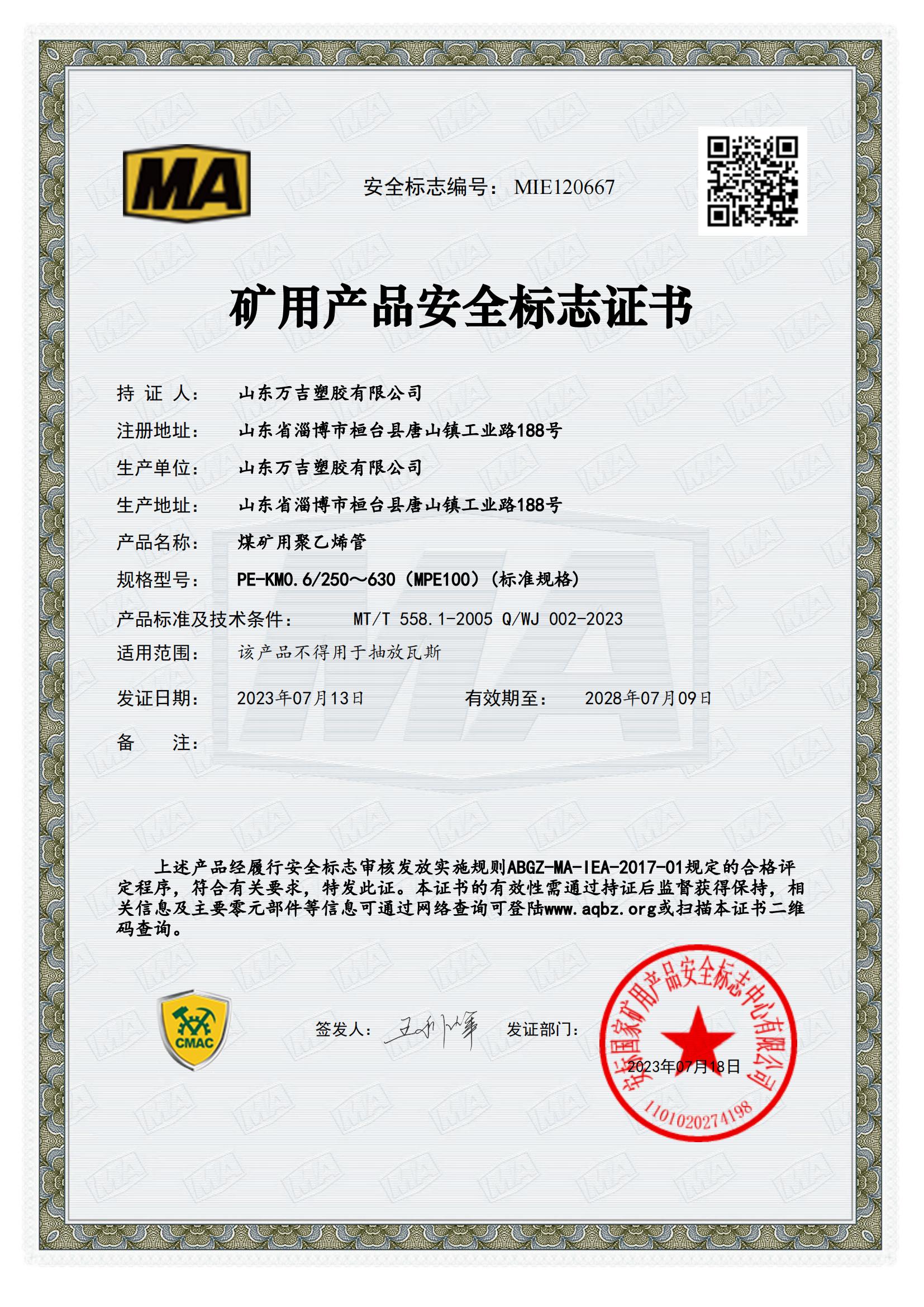 Qualified, holding pressure pipe A-level production permit, mine product safety mark