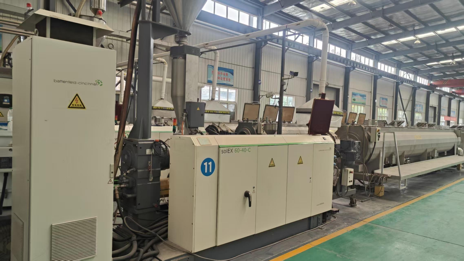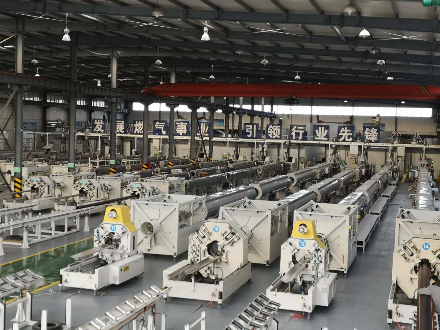 Product Production Introduction: The gas pipe workshop uses the German Paton PE pipe automated production line, equipped with Italian Baiwang dehumidification and drying equipment, and a German online meter weight measurement system and ultrasonic wall thickness measurement system.